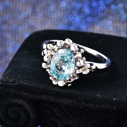 Lucy Q Bubble Collection - Ratanakiri Blue Zircon Ring in Rhodium Overlay Sterling Silver 2.79 Ct.