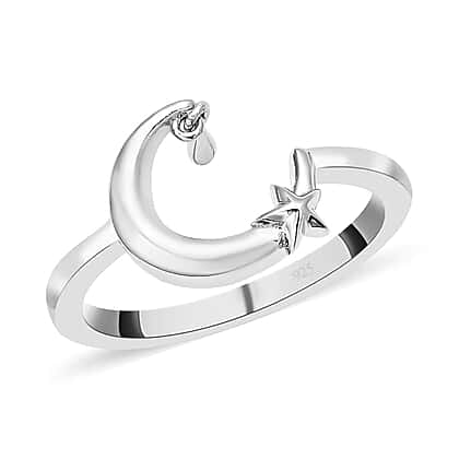 The celestial theme inspires this alluring half moon and star ring by Lucy Q Collection. It features a half-crescent moon, star and a teardrop dangling through the ring. It is made from 925 sterling silver with rhodium overlay and has a sleek shank design to give you a comfortable fit. The half crescent moon is said to symbolise fertility, life and death. The star is said to symbolise divine guidance and protection. Stack your fingers with this classy and modern ring.
