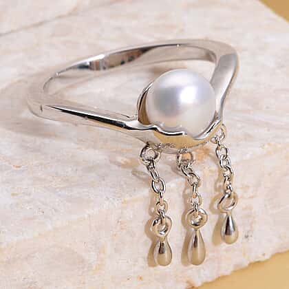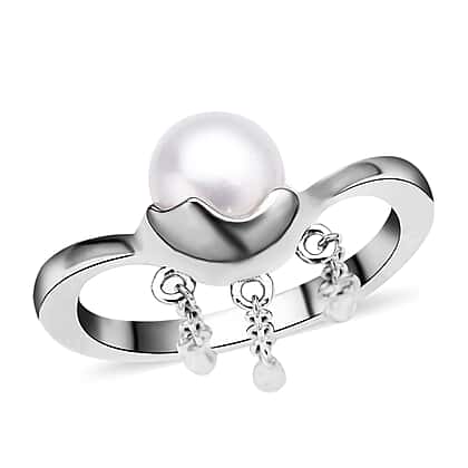 Lucy Q Fluid Pearl Collection - Freshwater Pearl Ring in Rhodium Overlay Sterling Silver