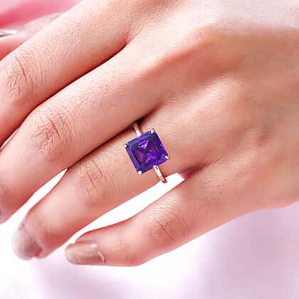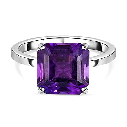 Lusaka Amethyst (Asscher Cut) Solitaire Ring in Platinum Overlay Sterling Silver 4.60 Ct.