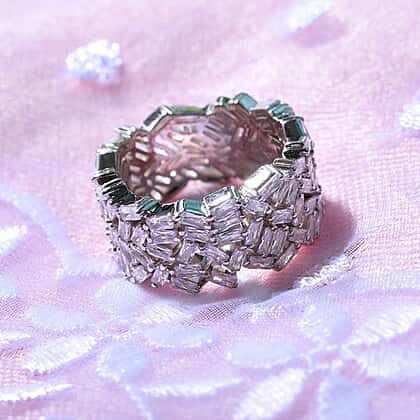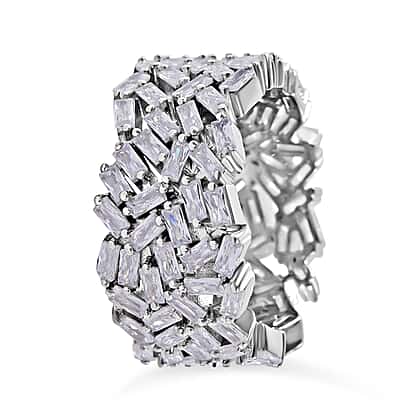 Lustro Stella - Cubic Zirconia Fire Cracker Full Eternity Band Ring in Rhodium Overlay Sterling Silver, Silver Wt 7.10 Gms
