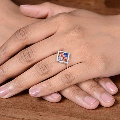 Lustro Stella - Simulated Rainbow Sapphire Ring in Platinum Overlay Sterling Silver