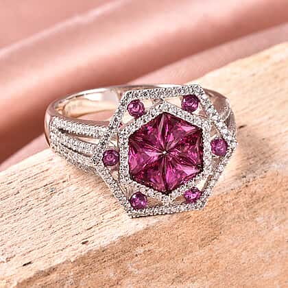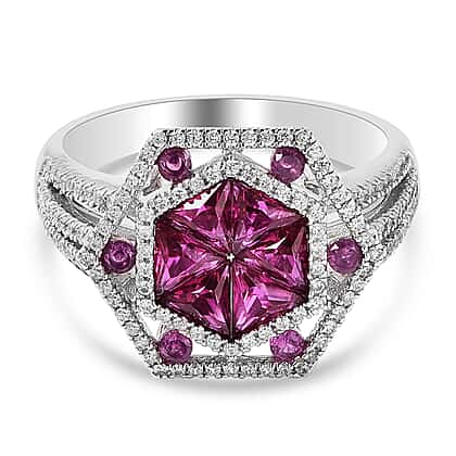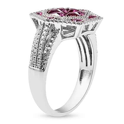 Lustro Stella Mystery Setting Simulated Ruby and Simulated Diamond Ring in Platinum Plated Sterling Silver