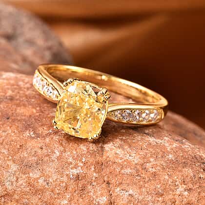 Lustro Stella - Simulated Yellow Diamond and Simulated White Diamond Ring in Yellow Gold Overlay Sterling Silver 4.32 Ct.
