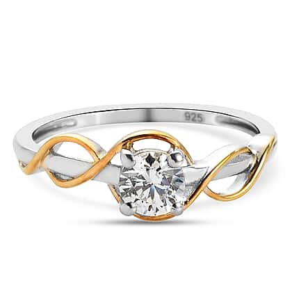 Lustro Stella - Two Tone Overlay Sterling Silver Ring Made with Finest CZ