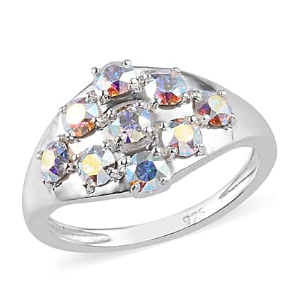 Lustro Stella Made with Finest CZ AB Crystal Ring in Sterling Silver