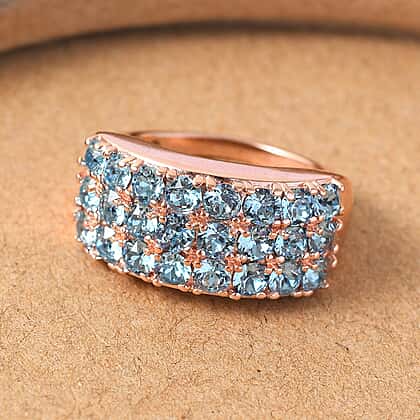 - The Rose Gold shine complements the soothing deep blue shade of aquamarine crystals superbly.