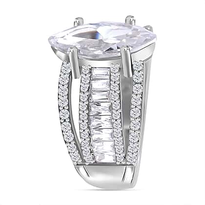 Lustro Stella -White Cubic Zirconia Ring in Rhodium Overlay Sterling Silver