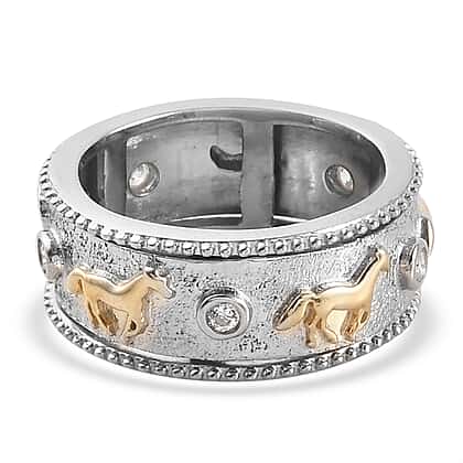 Lustro Stella Platinum and Yellow Gold Overlay Sterling Silver Horse Spinner Ring Made with Finest CZ, Silver wt. 5.99 Gms