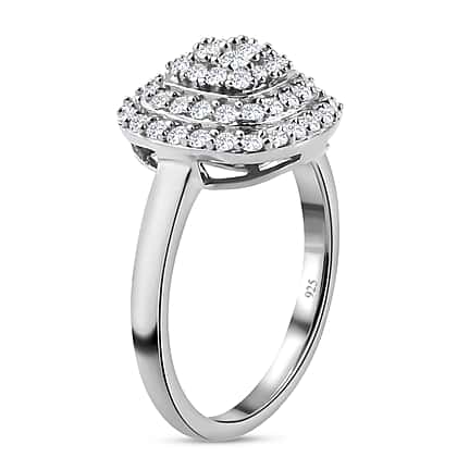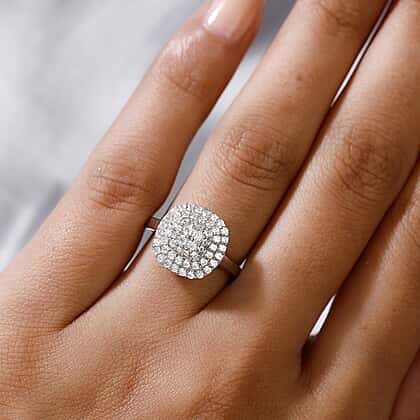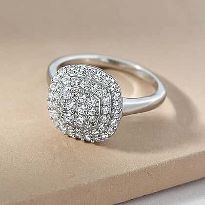 Lustro Stella Platinum Overlay Sterling Silver Cluster Ring Made with Finest CZ 1.30 Ct