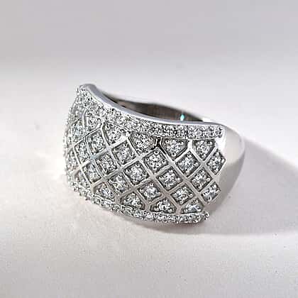 Lustro Stella Finest CZ Dome Ring in Platinum Plated Sterling Silver