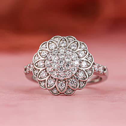 Lustro Stella Finest CZ 1.07 Ct. Floral Ring in Platinum Plated Sterling Silver