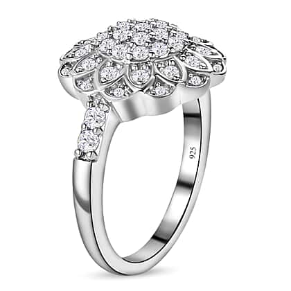 Lustro Stella Platinum Overlay Sterling Silver Floral Ring Made with Finest CZ 1.07 Ct.