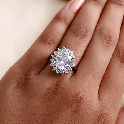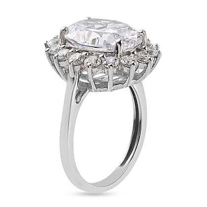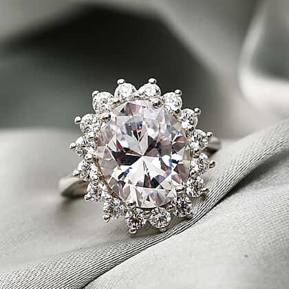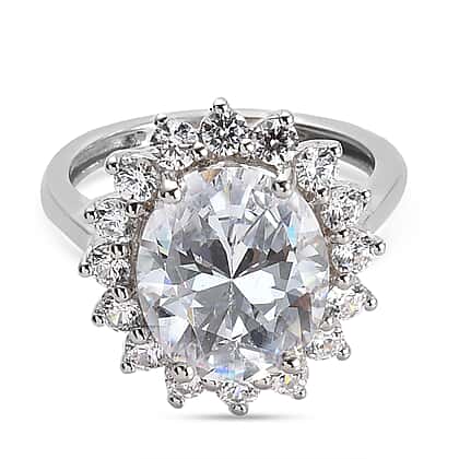 Lustro Stella Platinum Overlay Sterling Silver Ring Made with Finest CZ 10.72 Ct.