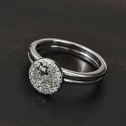 Lustro Stella Platinum Overlay Sterling Silver Stackable Star Cluster Ring Made with Finest CZ