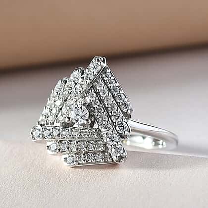 Lustro Stella Platinum Overlay Sterling Silver Triangle Ring Made with Finest CZ 1.17 Ct.