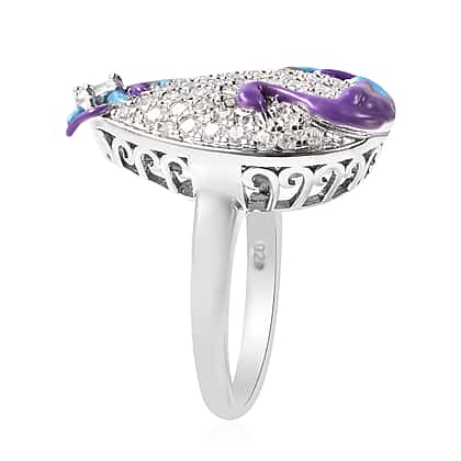 Lustro Stella Made with Finest CZ Ring in Rhodium Plated Sterling Silver