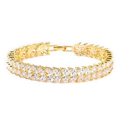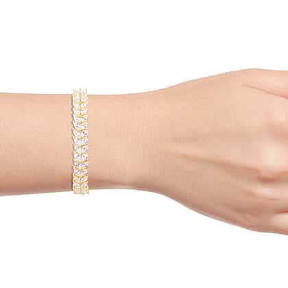 Lustro Stella Simulated Diamond (Mrq) Leafy Vine Bracelet (Size 7.5) in Yellow Gold Overlay Sterling Silver, Silver wt 12.51 Gms