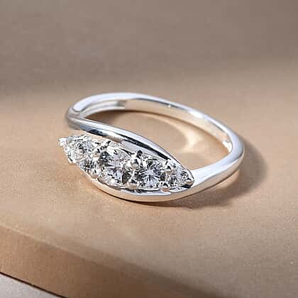 Lustro Stella Sterling Silver 5 Stone Ring Made with Finest CZ 1.13 Ct.