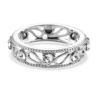 Lustro Stella White Crystal Band Ring in Platinum Tone