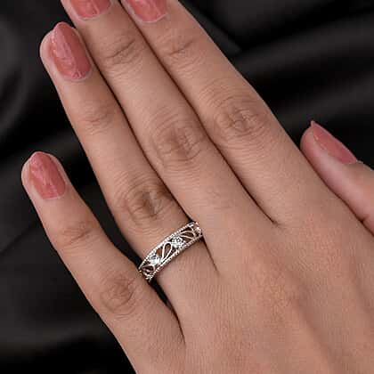 - This band ring is decked with ten round plain cut White Finest CZ and glimmers ethereally