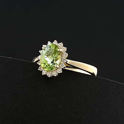 Luxoro 10K Yellow Gold AAA Green Tourmaline , White Diamond I2 Ring 1.60 ct, Gold Wt. 3.94 Gms 1.600 Ct.