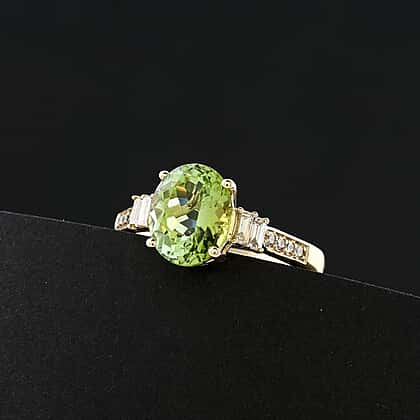 Luxoro 10K Yellow Gold AAA Green Tourmaline , White Diamond I2 Ring 3.10 ct, Gold Wt. 3.87 Gms 3.100 Ct.