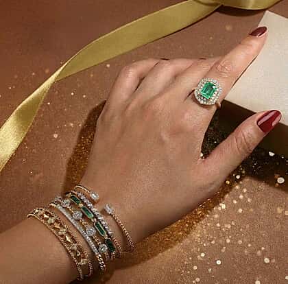 A lush burst of green takes focus in this AAA Zambian emerald double halo ring, crafted for women who appreciate meaningful luxury. AAA-grade Zambian emeralds are highly valued for their rich colour, natural rarity and robust structure. Surrounding white diamonds add bright fire, while the double halo amplifies brilliance and presence. Made from 10K yellow gold, the ring is hypoallergenic, tarnish‑resistant and won’t turn green, ensuring comfort over time. Add this ring when you want standout colour, refined sparkle and a design that feels truly special.