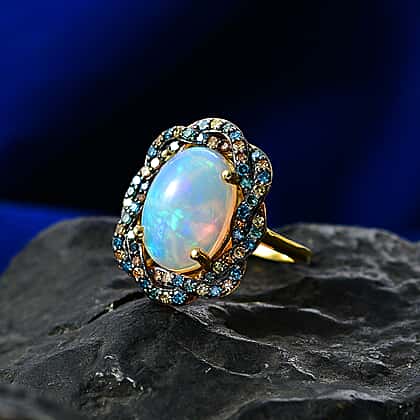 Luxuriant - AAA Ethiopian Opal & SI-G-H Lab Grown Multi Diamond Cluster Halo Ring in 18K Vermeil Yellow Gold Plated Sterling Silver 4.48 Ct.