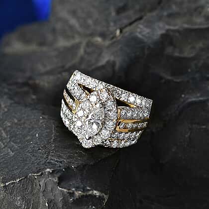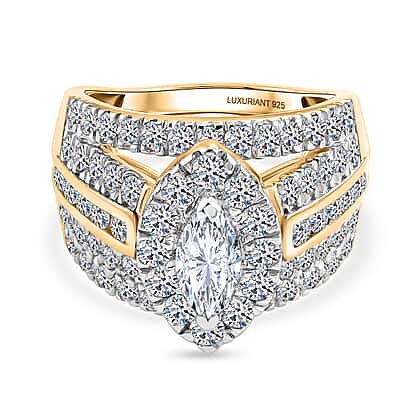 Luxuriant - SGL Certified SI-G-H Lab Grown Diamond Dome Ring in 18K Vermeil Yellow Gold Plated Sterling Silver 3.02 Ct.