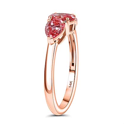 Luxuriant 14K Rose Gold SGL Certified Lab Grown Pink Diamond (VS-SI) Trilogy Ring 1.55 Ct.