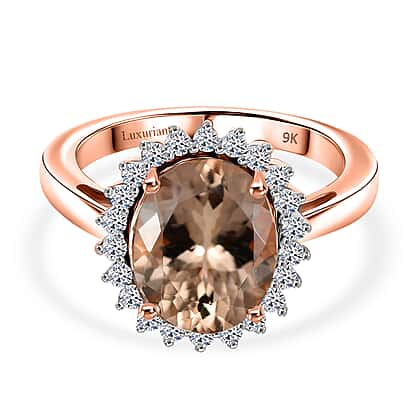 Luxuriant 9K Rose Gold AAA Morganite & Lab Grown Diamond (SI-GH) Ring 3.53 Ct.