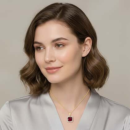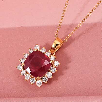 Luxuriant African Ruby & Lab Grown Diamond SI-GH (0.50 Cts)Pendant with Chain (Size 20) in 18K Vermeil Yellow Gold Plated Sterling Silver 5.40 Ct.