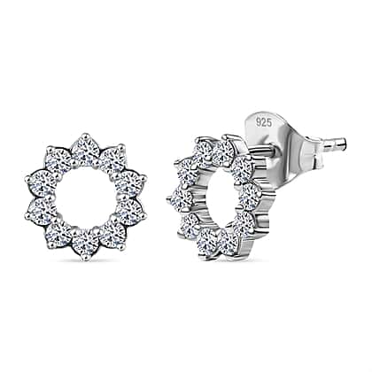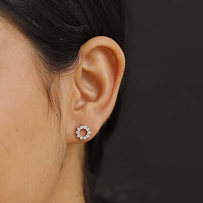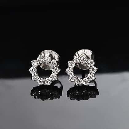 LUXURIANT 0.50 Ct. Lab Grown Diamond Open Circle Earring with Push Back in Rhodium Overlay Sterling Silver (SI G/H)