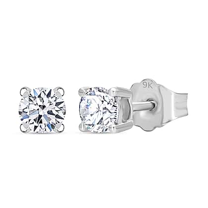LUXURIANT 0.50 Ct Lab Grown Diamond Solitaire Stud Earrings in 9K White Gold, SGL Certified (VS-EF)