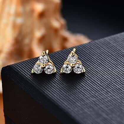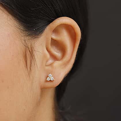 Add a graceful glow to your everyday look with these lab grown diamond earrings, crafted in radiant 18K vermeil yellow gold over 925 sterling silver. Designed in a chic cluster of three SI clarity G/H colour diamonds, they shimmer with elegance while offering a responsible alternative to natural stones. The high-polish gold vermeil finish resists tarnish, is hypoallergenic, and ideal for sensitive skin. The earrings secure with classic push backs for daily ease and comfort. Their compact yet eye-catching design makes them a charming gift or a personal treat that enhances both casual and dressy looks with refined brilliance.