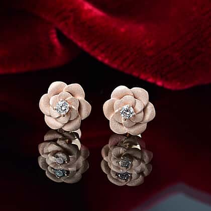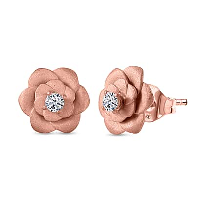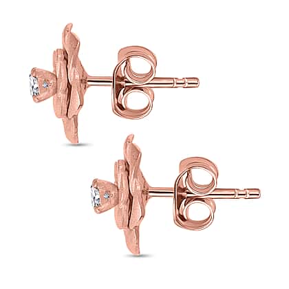 Luxuriant Diamond Lab Grown Diamond (SI-G-H) Floral Stud Push Back Earrings in 18K Vermeil Rose Gold Plated Sterling Silver
