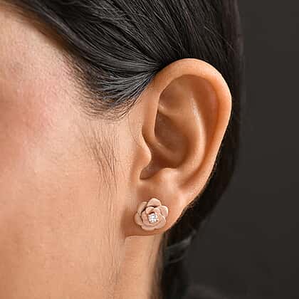 LUXURIANT Lab Grown Diamond Floral Solitaire Push Back Earrings in 18K Vermeil Rose Gold Plated Sterling Silver (SI G/H)