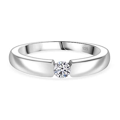 LUXURIANT Lab Grown Diamond (VS-E-F) Solitaire Tension Ring in Rhodium Overlay Sterling Silver