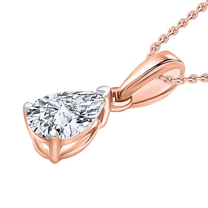 LUXURIANT Pear Cut Lab Grown Diamond Pendant with Chain (Size 18/20) in Vermeil Rose Gold Plated Sterling Silver