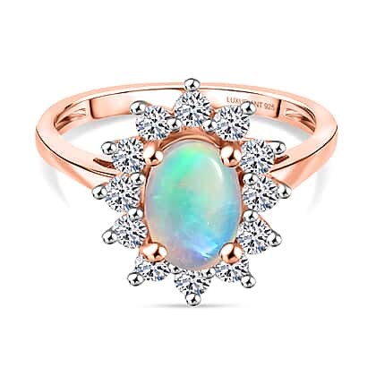Luxuriant Ethiopian Opal & Lab Grown Diamond (SI-GH) Ring in 18K Vermeil Rose Gold Plated Sterling Silver 1.64 Ct.