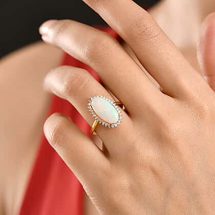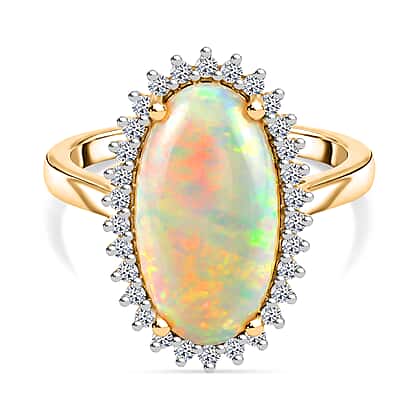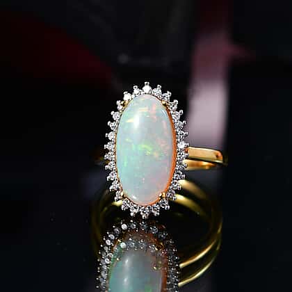 Luxuriant Ethiopian Opal & SI-G-H Lab Grown Diamond Halo Ring in 18K Vermeil Yellow Gold Plated Sterling Silver 3.34 Ct.