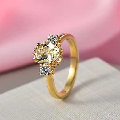 Luxuriant Heliodor & Lab Grown Diamond (SI-GH) Ring in 18K Vermeil Yellow Gold Plated Sterling Silver 1.44 Ct.