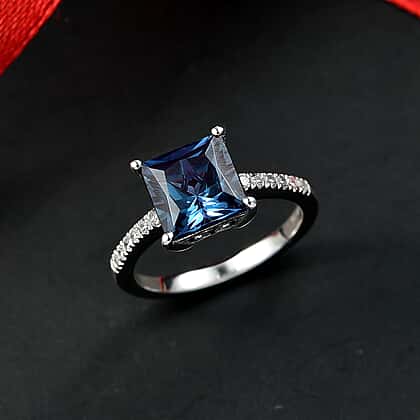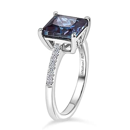 LUXURIANT 3.27 Ct. Lab Grown Alexandrite, Lab Grown Diamond Ring in Rhodium Overlay Sterling Silver