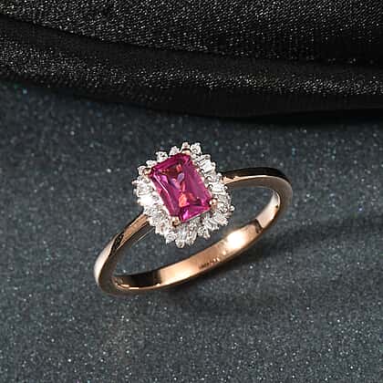 Luxuriant Lab Grown Bixbite & Lab Grown Diamond (SI-GH) Ring in 18K Vermeil Rose Gold Plated Sterling Silver
