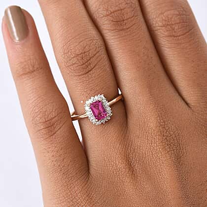 - Features lab-grown bixbite in a rich pink hue at the centre.