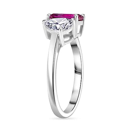 Luxuriant Lab Grown Bixbite & Moissanite Ring in Platinum Overlay Sterling Silver 1.59 Ct.