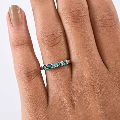 LUXURIANT 0.50 Ct. Lab Grown Blue Diamond 5-Stone Ring in Rhodium Overlay Sterling Silver (VS-EF)