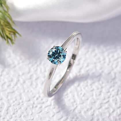 Luxuriant Lab Grown Blue Diamond (VS-EF) Solitaire Ring in Rhodium Overlay Sterling Silver 0.50 Ct.