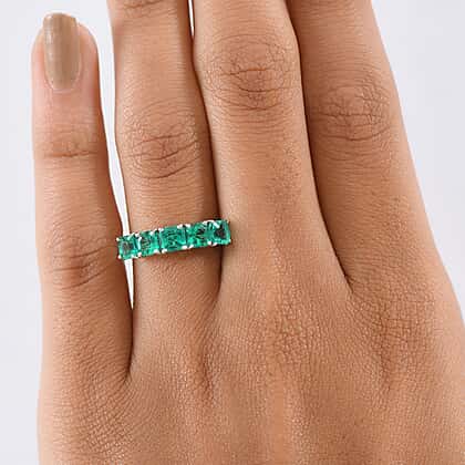Experience the pinnacle of luxury with this stunning lab-grown Colombian emerald ring, a perfect reflection of class and sophistication. This five-stone ring features a row of lab-grown Colombian emeralds on rhodium overlay, creating a piece that exudes flawless shine. Columbian emerald is revered for its deep green hue and its symbolic association with love and eternal life. Crafted in hypoallergenic 925 sterling silver, this ring ensures durability and comfort for sensitive skin. The ring shines with its glossy finish and gemstone's sparkle, making it suitable for special gifting like engagement, anniversaries, birthdays, and also for personal styling.